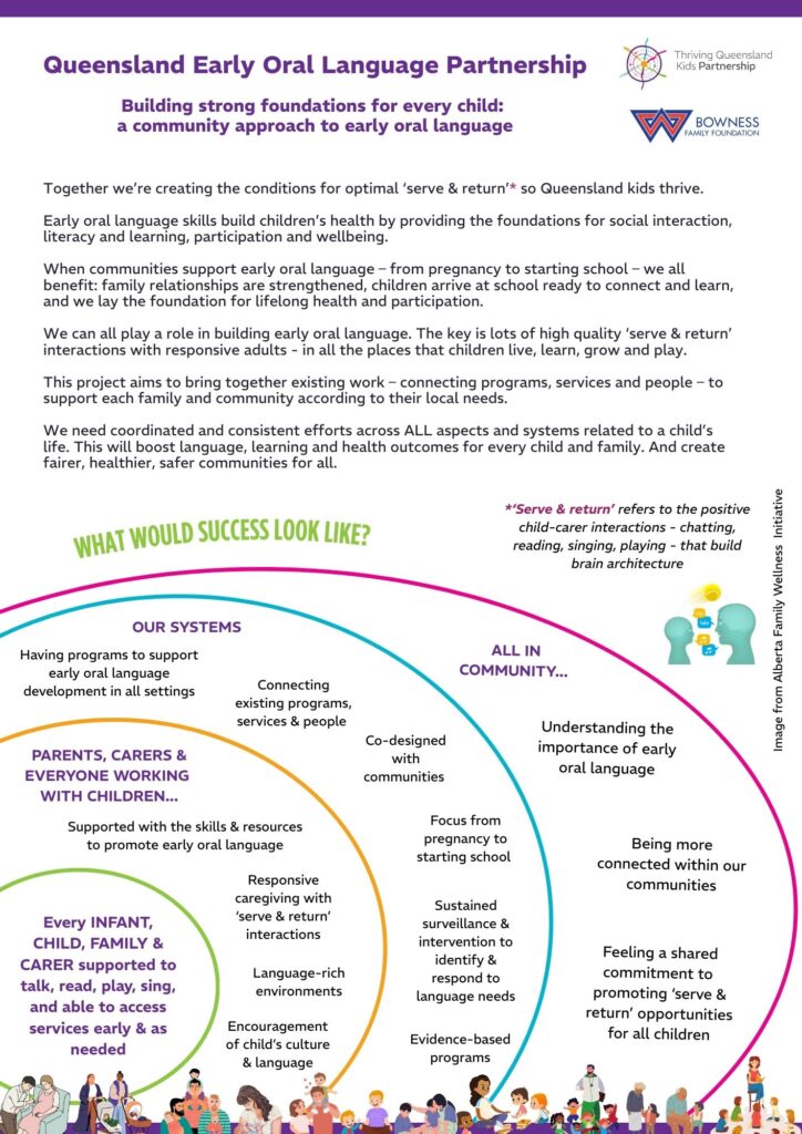 The Queensland Early Oral Language Partnership aligns with the National Commitment to Early Oral Language.
